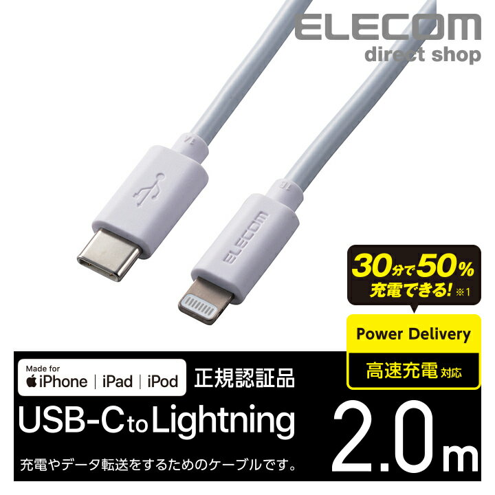 エレコム USB-C to Lightningケーブル スタンダード 充電 データ 転送 高速充電 対応 Apple正規ライセンス取得 タイプc ライトニングケーブル アイフォン iphone 2.0m ホワイト MPA-CL20WH