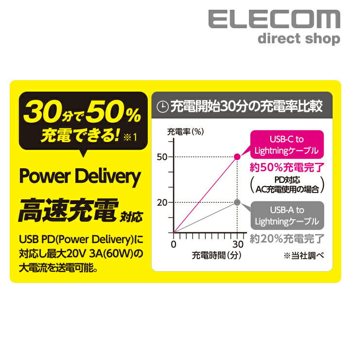 ※iPhone8以降に発売されたPower Delivery対応機種とPower Delivery規格に対応した充電器を使用して充電した場合。